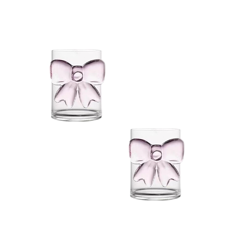 2PCS Glass Cup With Bow Transparent Glass Iced Coffee Cup Glass Juice Cup Milk Cup Suitable For Weddings Parties And Home Home Decor 2.8*3.5in