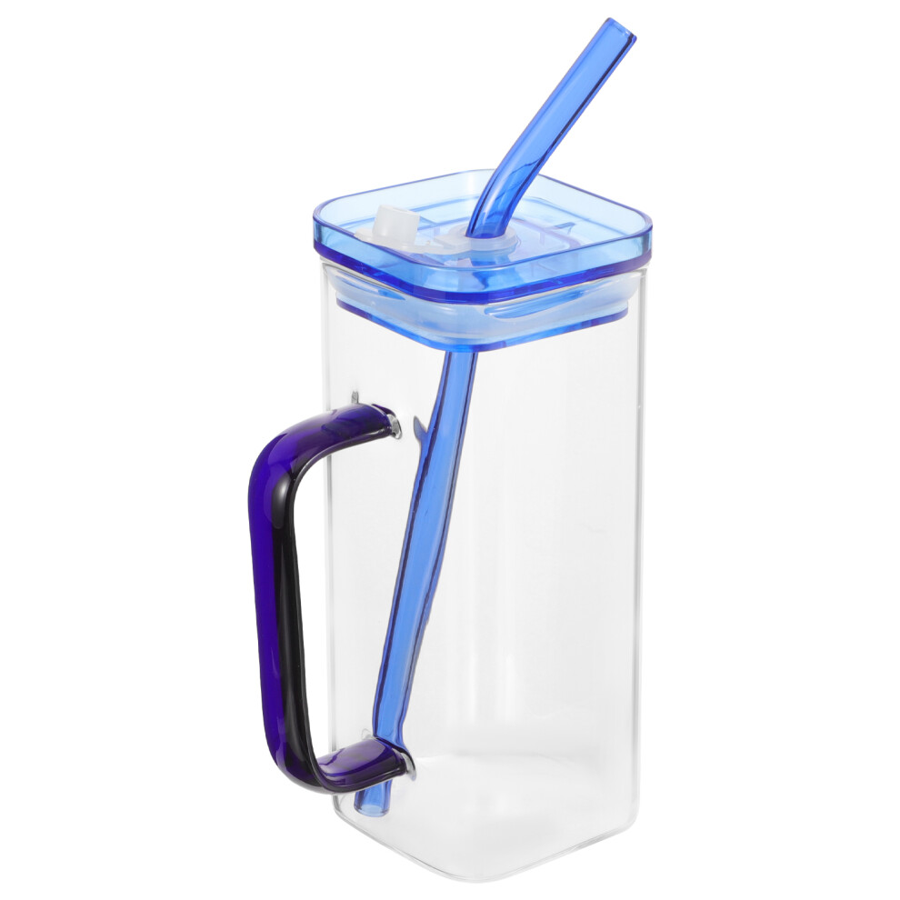 1pc 20oz Clear Glass Tumbler w/ Bamboo Lid & Straw, Handle, Iced Coffee/Tea/Beer Glass â Blue