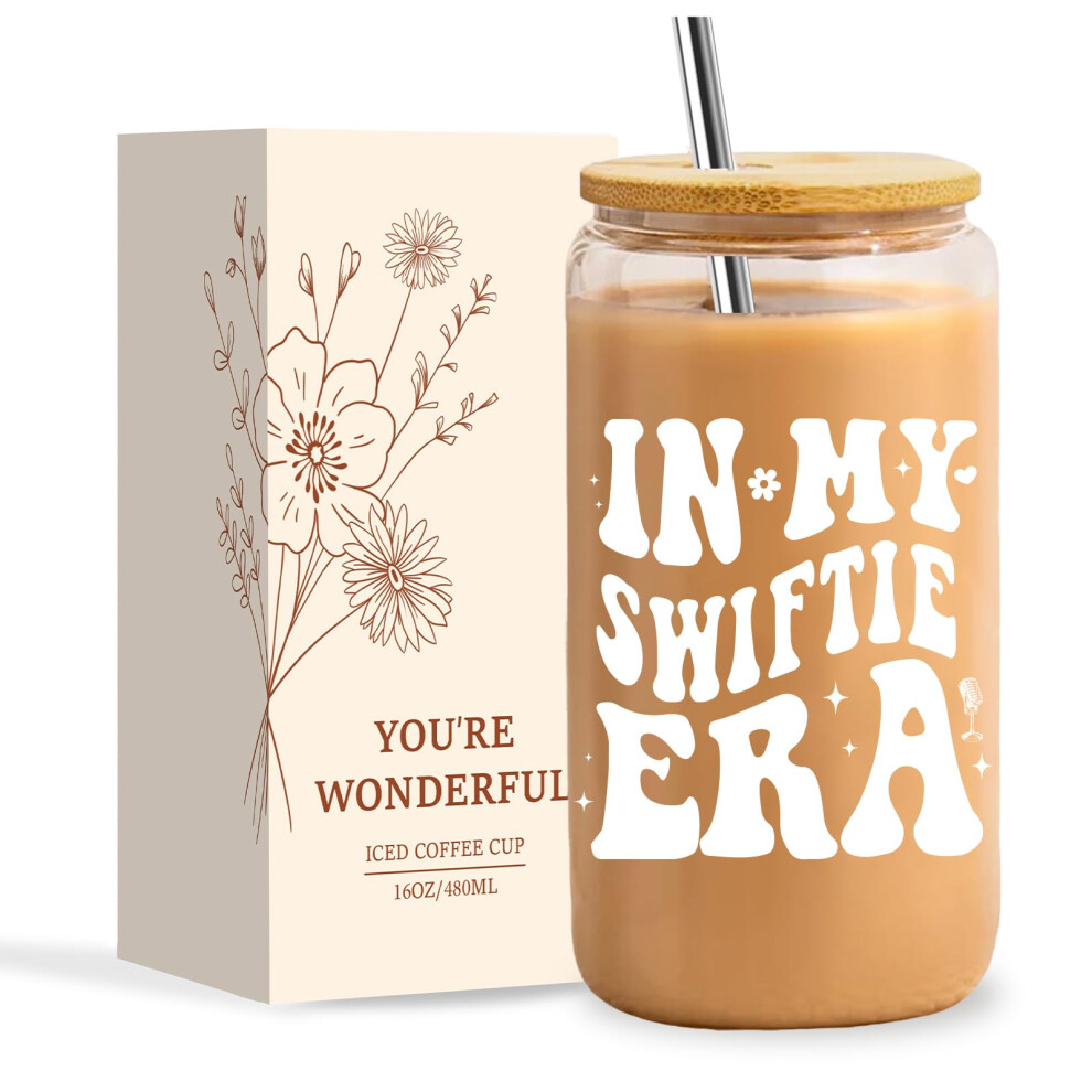 NOOMII Music Lovers Gifts Iced Coffee Glass Cup | 16oz Music Lover Travel Mug | Singer Merchandise Cup with Lids and Straws | Personalized Singer
