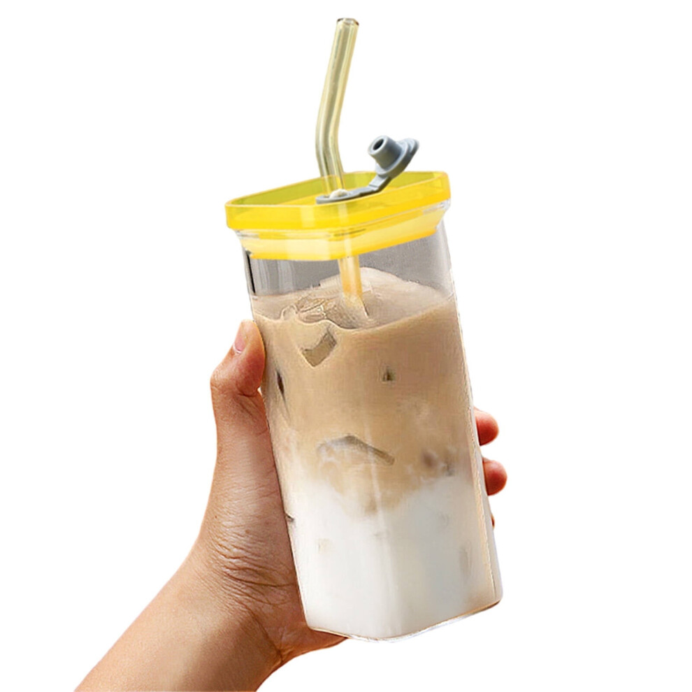 Square Mouth Glass Cup 14oz with Lid & Straw, Iced Coffee/Beer Glass, Premium Insulated â Compatible with Z2-Yellow