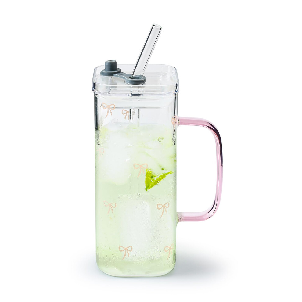 Glass With Lid And Straw Bow Glass Cup 390 Ml Iced Coffee Glass Cup Matcha Glass For Iced Coffee And Smoothies