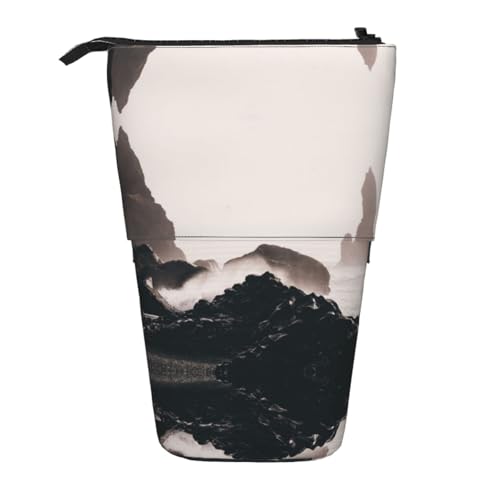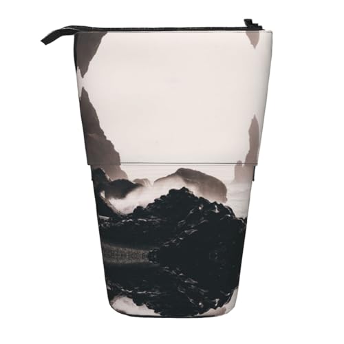 EZDLOWVBA Iceland Print Stationery Bag for Boys & Girls, Stand Pencil Holder, Zip Pencil Case, Telescopic Case, Students & Office Middle School