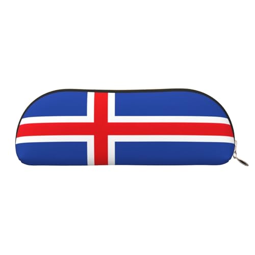 Pencil Case Flag of Iceland Leather Pencil Case Large Capacity Personalized Pen Pouch, for Girls, Boys, Adults