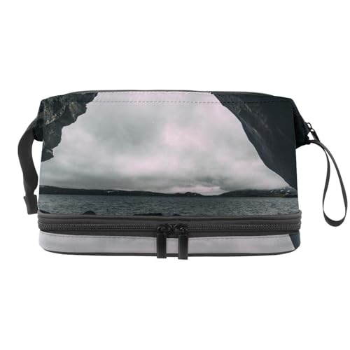 VAPOKF Iceland Cave Scenery Cosmetic Bag for Women and Girls, Travel Toiletry Bag Makeup Handy Pouch Organizer Bag with Brush Compartment