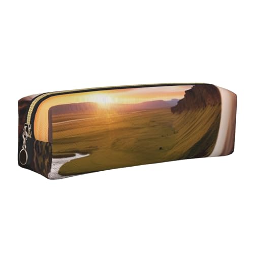 FLYIFE Iceland Waterfall River Field Sunset Print Leather Pencil Case Gold Zipper Pencil Bag Pen Pouch for Girls Boys, Cosmetic Organizer Bag for School Office Travel