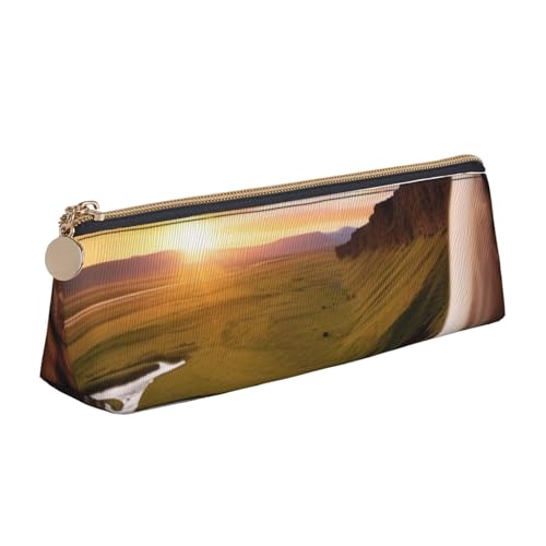 Iceland Waterfall River Field Sunset Printed Triangle Leather Pencil Case for Girls Boys, Zipper Pencil Bag Pen Pouch Bag Organizer for Student School Office College
