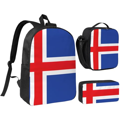 PPHGUT Flag of Iceland Print School Bag Set Lunch Bag Pen Case Boys Girls School Outdoor Activities Shopping