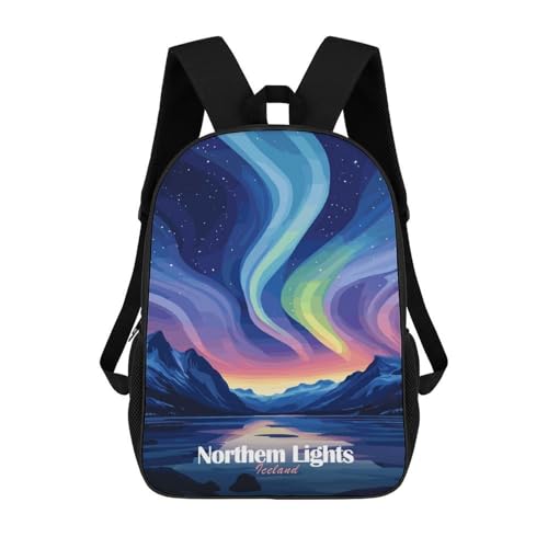 sinyumoney Unisex Northern Lights Iceland Backpack 3D Printed Travel Rucksack Casual Laptop Rucksack Lightweight Schoolbag For Men Women Boys Girls 17inch