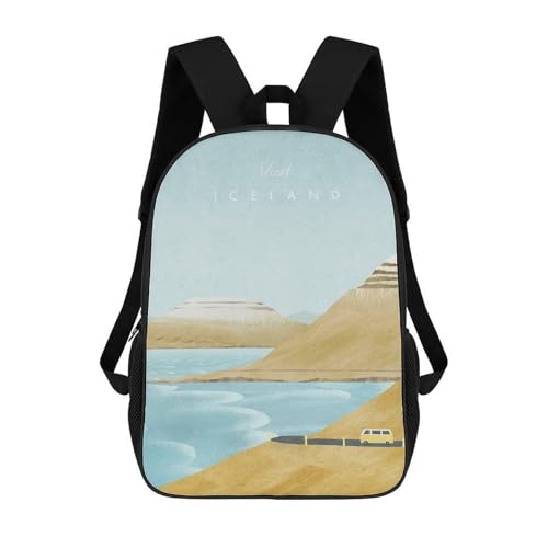 sinyumoney Iceland School Bag Backpack Teen Schoolbag 3D Printing Adjustable Schoolbag Fashion Pocket Bag for Kids Boys Girls Students And Teenagers Fans 17inch