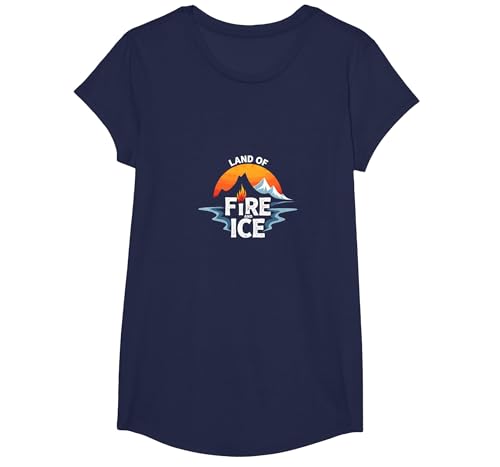 Iceland Land of Fire and Ice Adventure Graphic T-Shirt, Girls, Navy, Large
