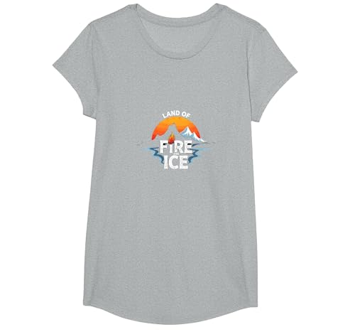 Iceland Land of Fire and Ice Adventure Graphic T-Shirt, Girls, Heather Grey, Large