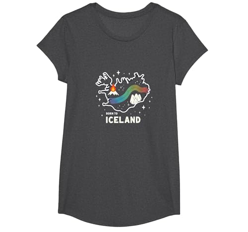 Iceland Land of Fire and Ice Adventure Graphic T-Shirt, Girls, Dark Heather Grey, XS