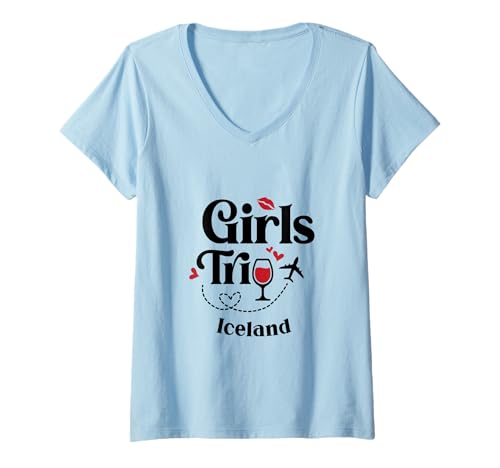 Womens Cute Wine Girls Trip Iceland Travel Vacation V-Neck T-Shirt