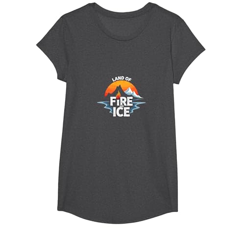 Iceland Land of Fire and Ice Adventure Graphic T-Shirt, Girls, Dark Heather Grey, Large