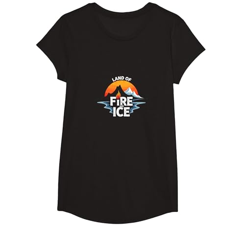 Iceland Land of Fire and Ice Adventure Graphic T-Shirt, Girls, Black, Medium