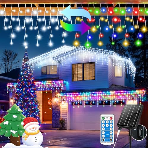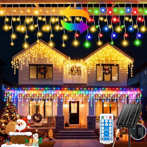 GCMacau 3 in 1 Solar Christmas Icicle Lights Outdoor 20+5m 82ft 660 Led Solar Icicle Fairy Lights 8 Lighting Modes with Dimmable String Lights Outdoor for Yard, Patio, and Wedding Decor