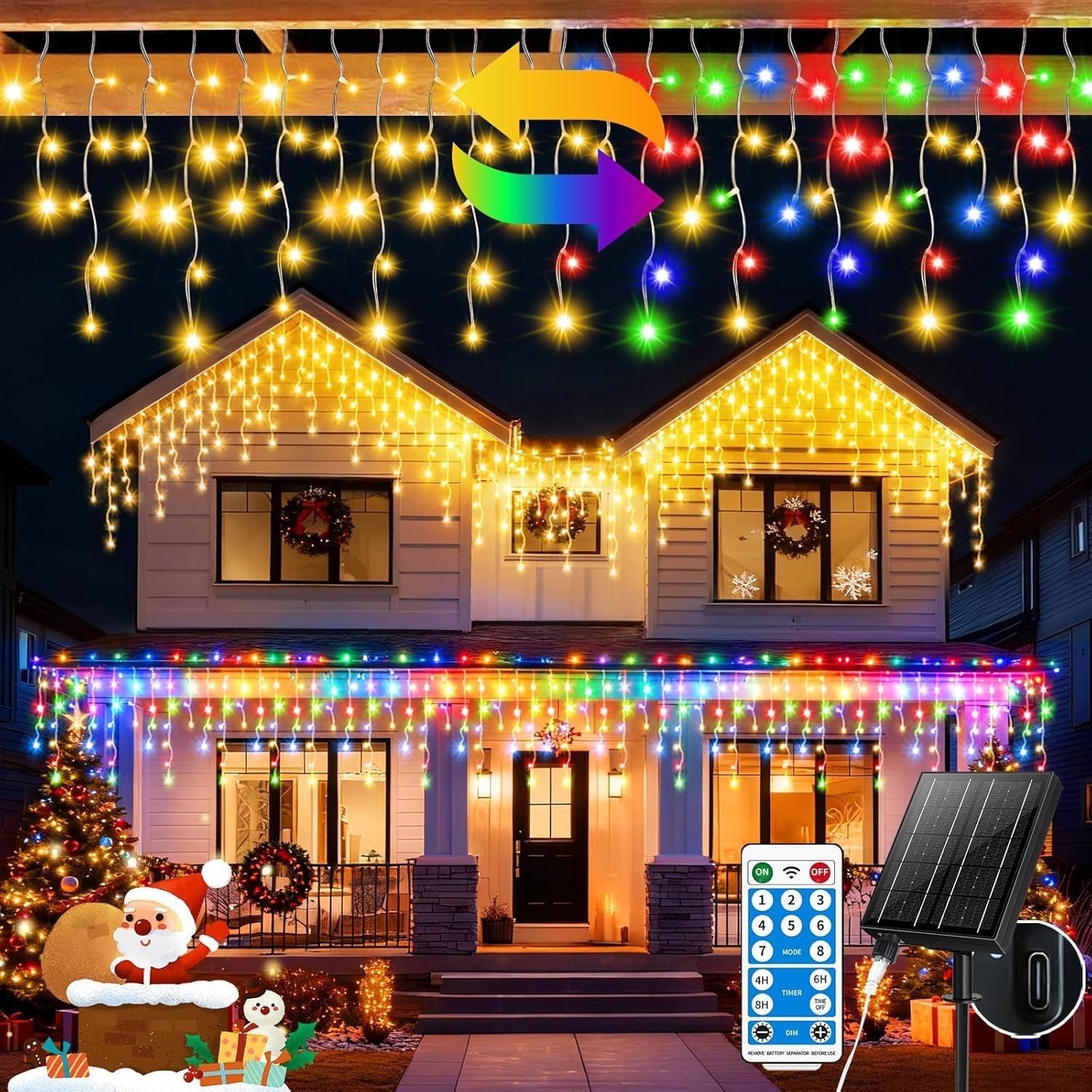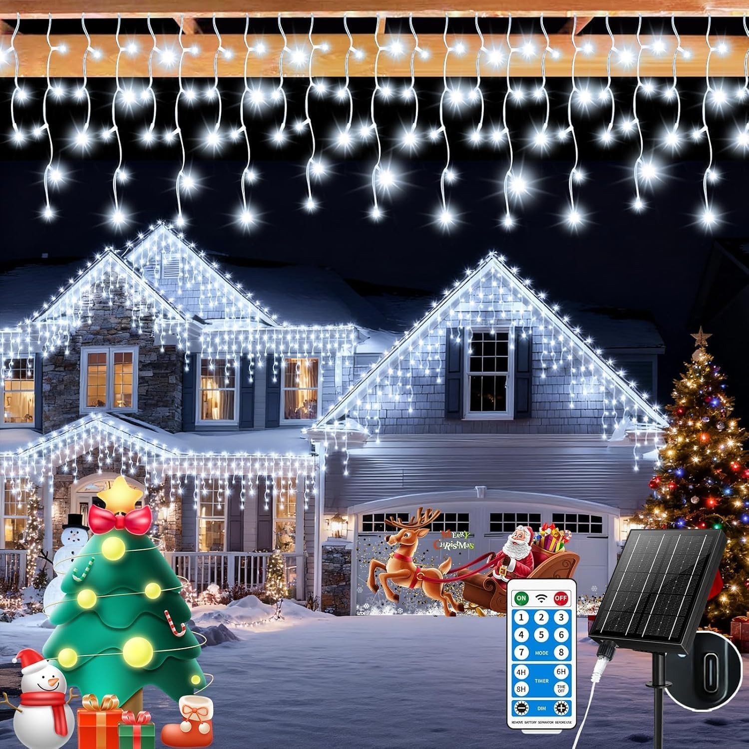 GCMacau Solar Christmas Icicle Lights Outdoor 65.6ft 506 LED Fairy String Light