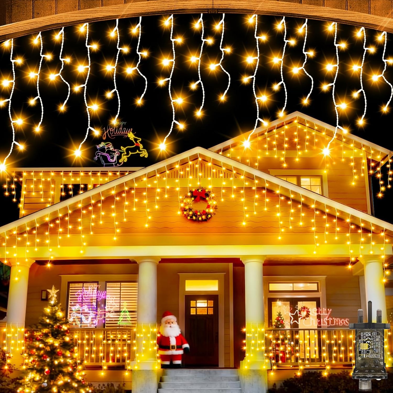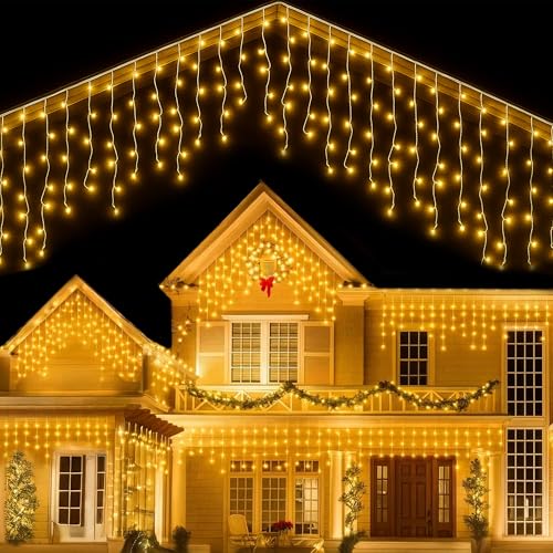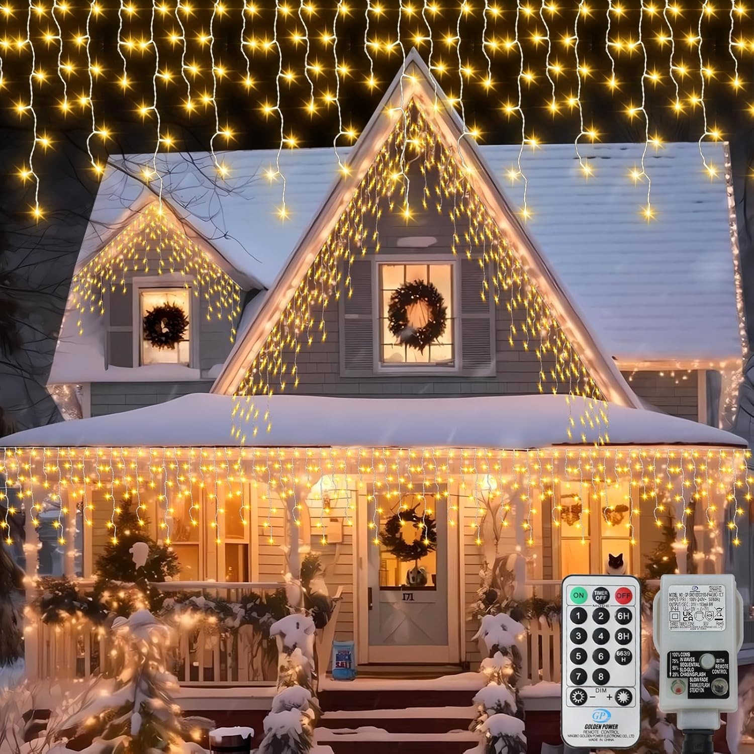Icicle Lights Outdoor Christmas, 400LED 12.8+5M Golden Warm Icicle Light 8 Mode