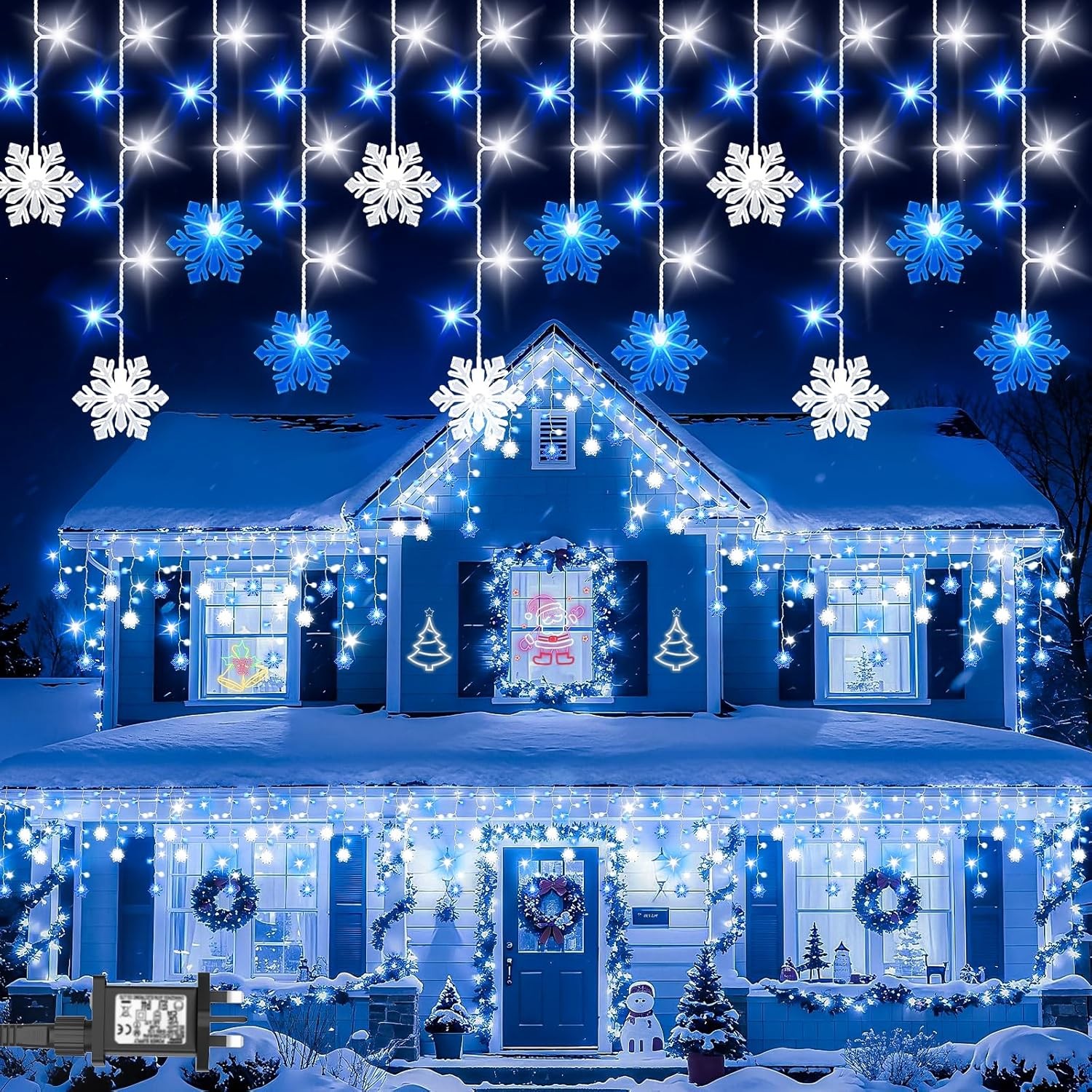 Icicle Lights Outdoor, 10M 240LED Christmas Snowflake Icicle Lights,Blue White