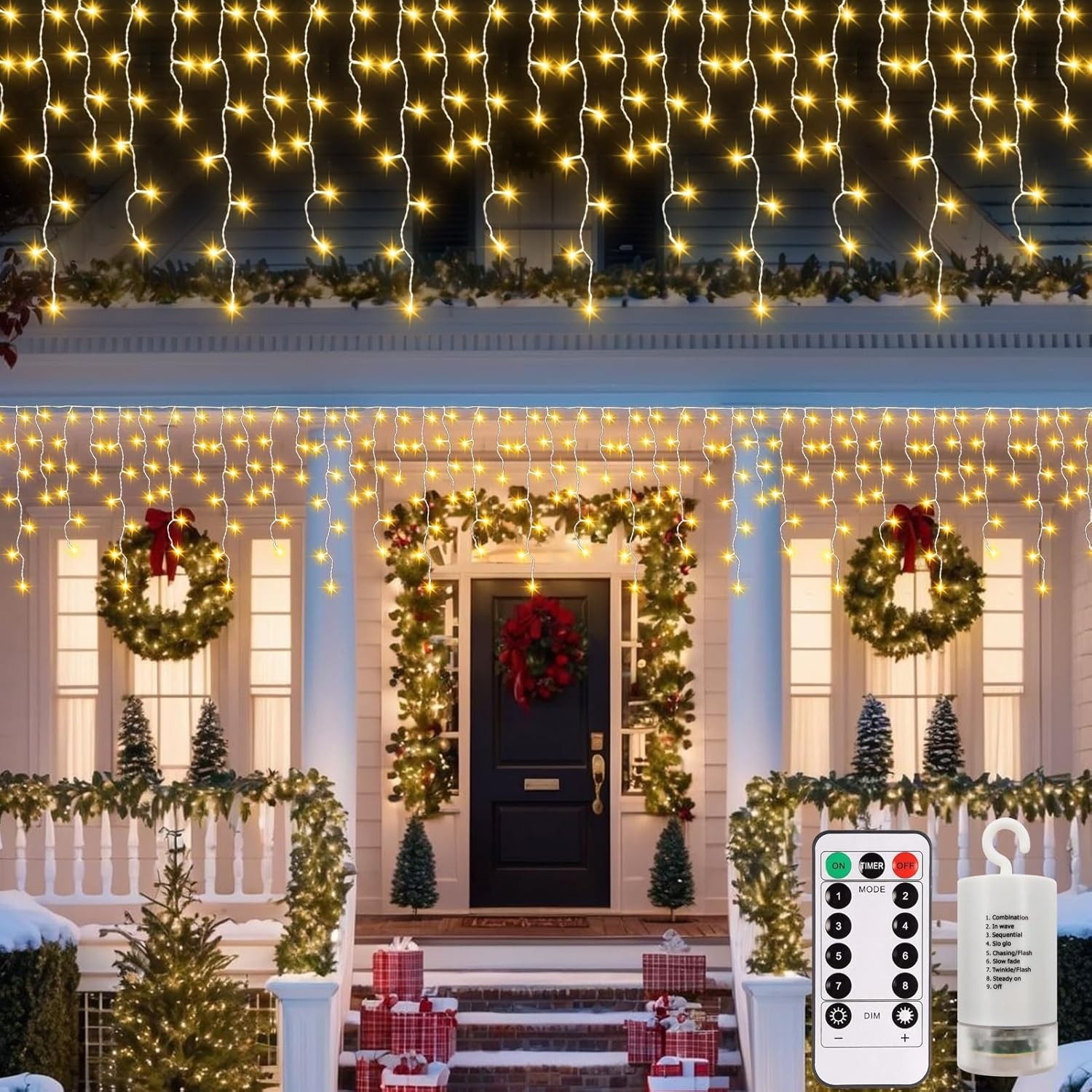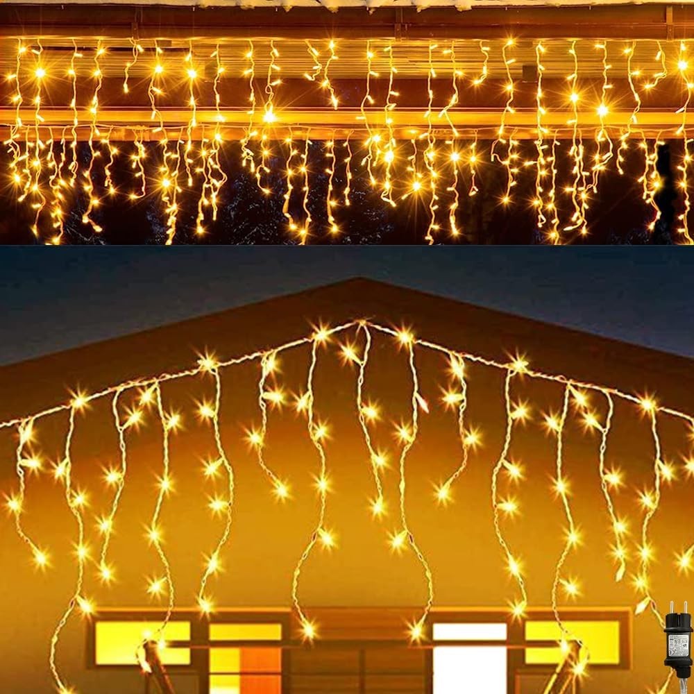 Icicle Lights Outdoor Christmas, 200LED 6.4+5M Golden Warm Icicle Light 8 Modes
