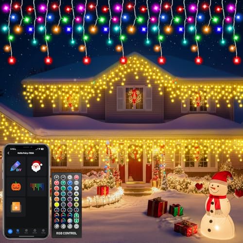 20M Smart Icicle Christmas Lights Outdoor - APP Remote Control, DIY 16M Colors Music Sync Waterproof LED Ice Fairy Lights with Timer, 100+ Effects Mains Powered for Roof Eaves House Holiday Decor