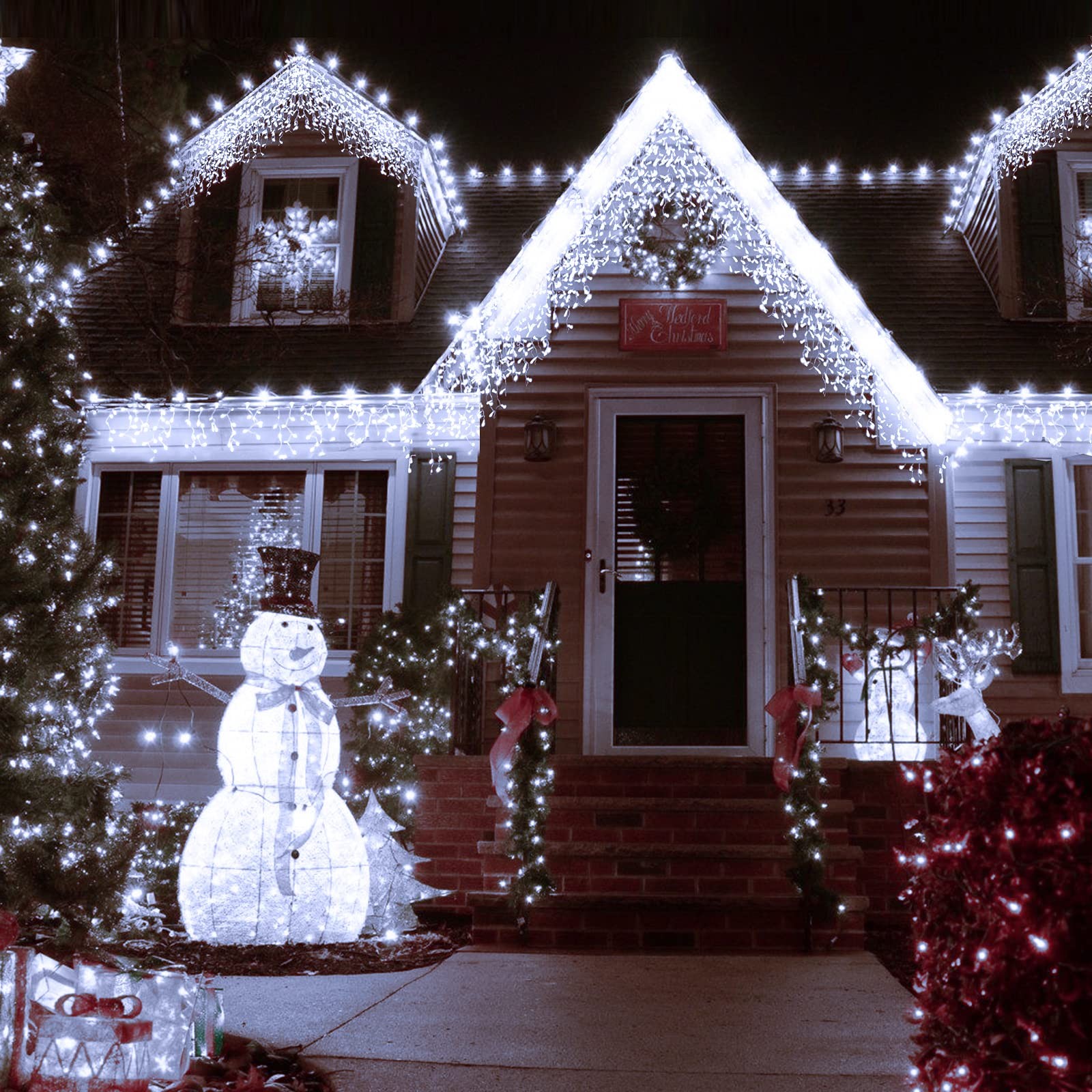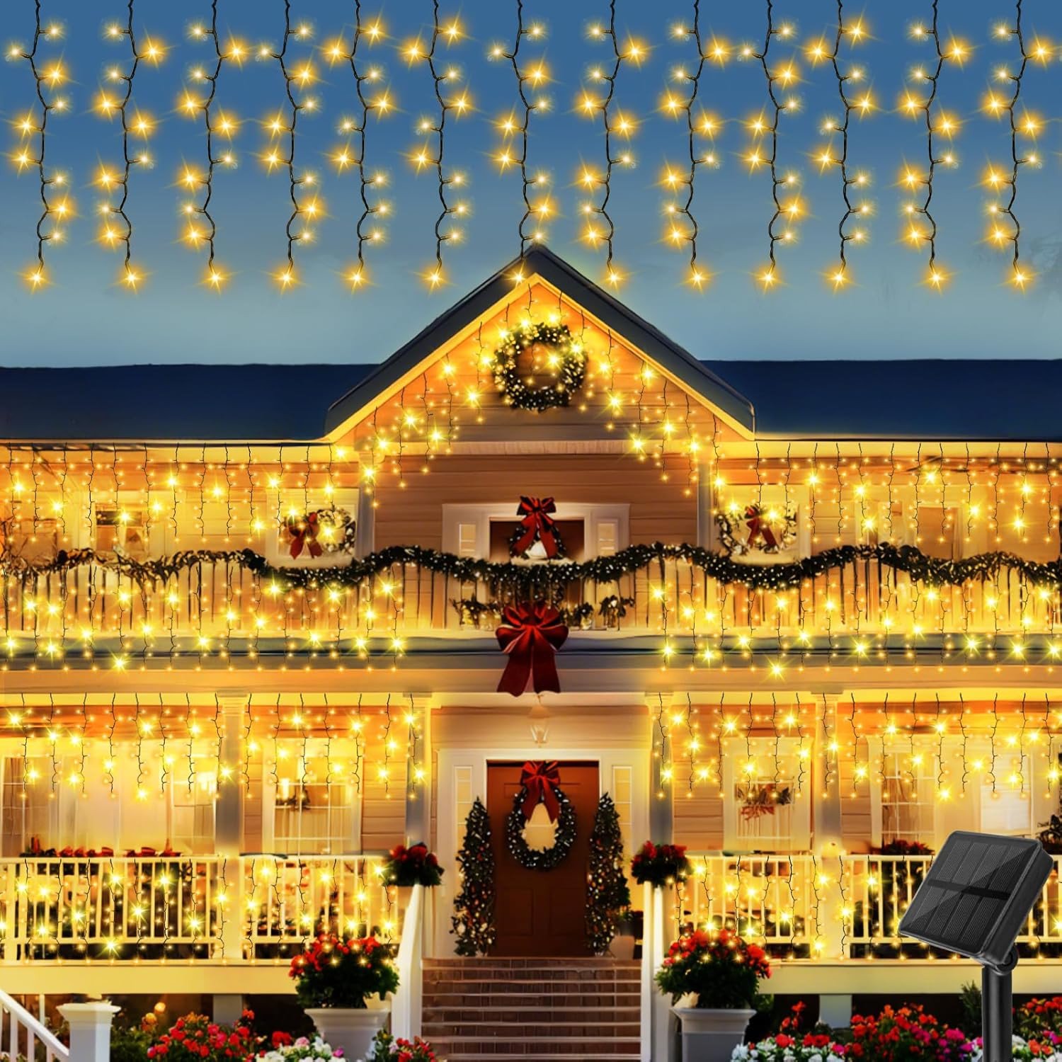 Christmas Icicle Lights Outdoor, 480 Leds 15.3M/49.2Ft Icicle Hanging Fairy Ligh