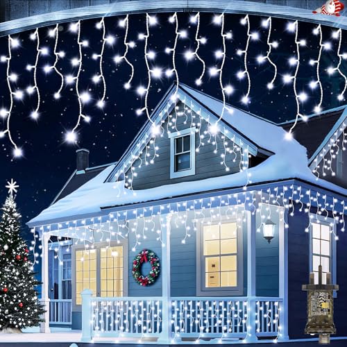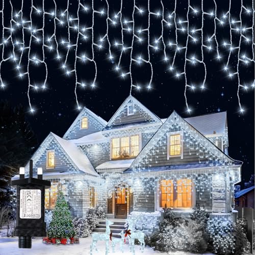 SAUSHENG 640 Led Christmas Icicle Lights Outdoor Xmas Lights 20M with Timer Waterproof Outside Fairy Lights for Indoor Window House Roof Porch Balcony Gutter Balcony Gazebo Decorations(Cold White