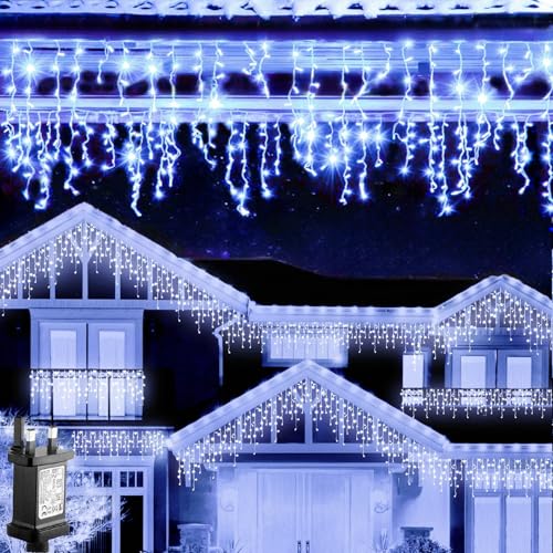 Christmas Connectable Icicle string Lights Outdoor Waterproof with 8 Multi-Function, Timer & Memory (Blue & Bright White, 20m)