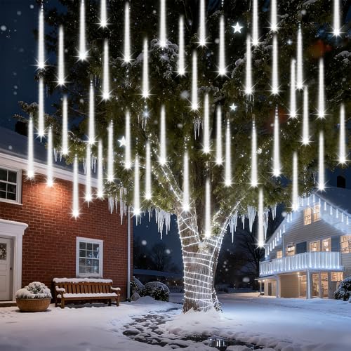 Wudyfei Outdoor Christmas Lights, 10 Tubes 30cm 240 Led Meteor Shower Lights, Icicle Lights Outdoor for Xmas Tree Decorations, Wedding, Party, Christmas Decorations, Cool White