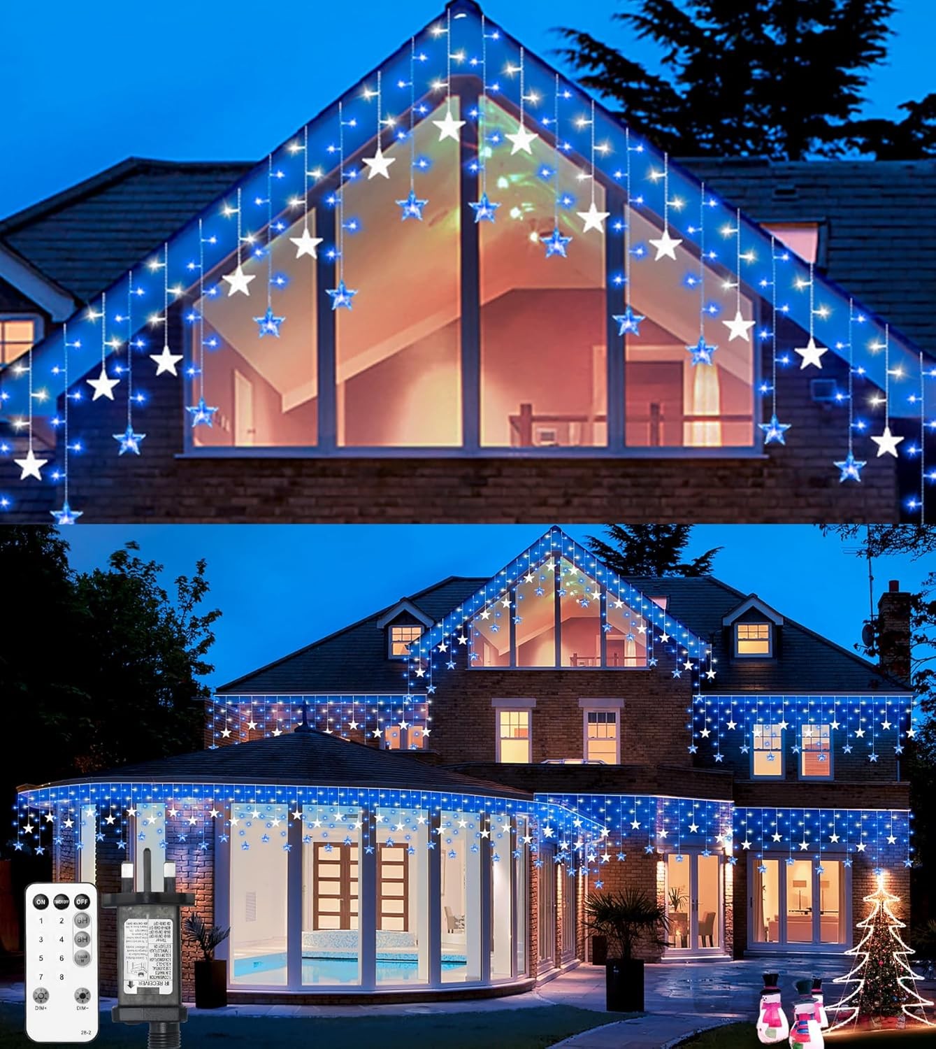 Icicle Christmas Lights Outdoor 10m/33ft 400LED Warm White & Cool White, Mains