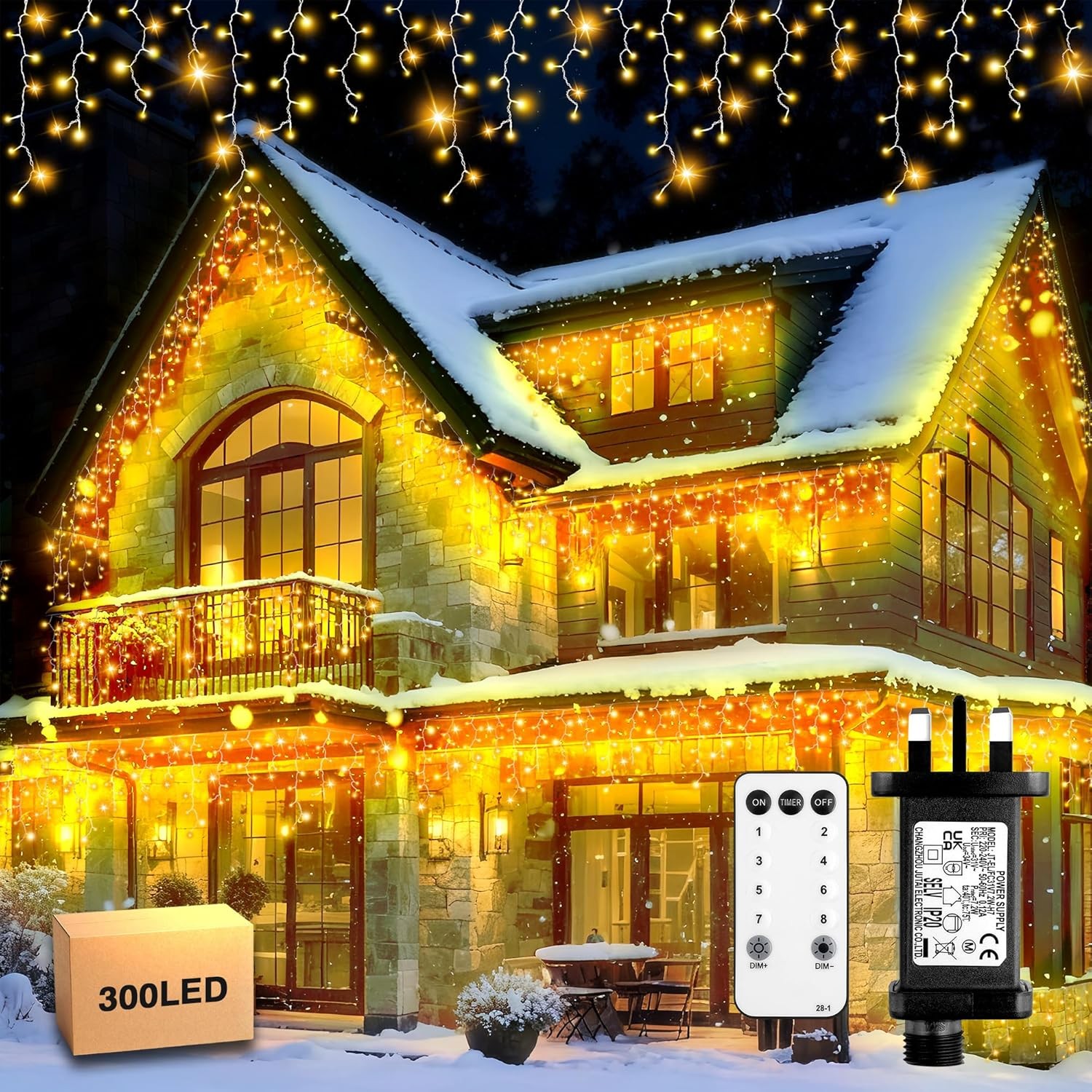Best Artificial Christmas Connectable Mains powered Icicle string Lights Outdoor Waterproof with 8 Multi-Function, Timer & Memory (Warm White, 5m)