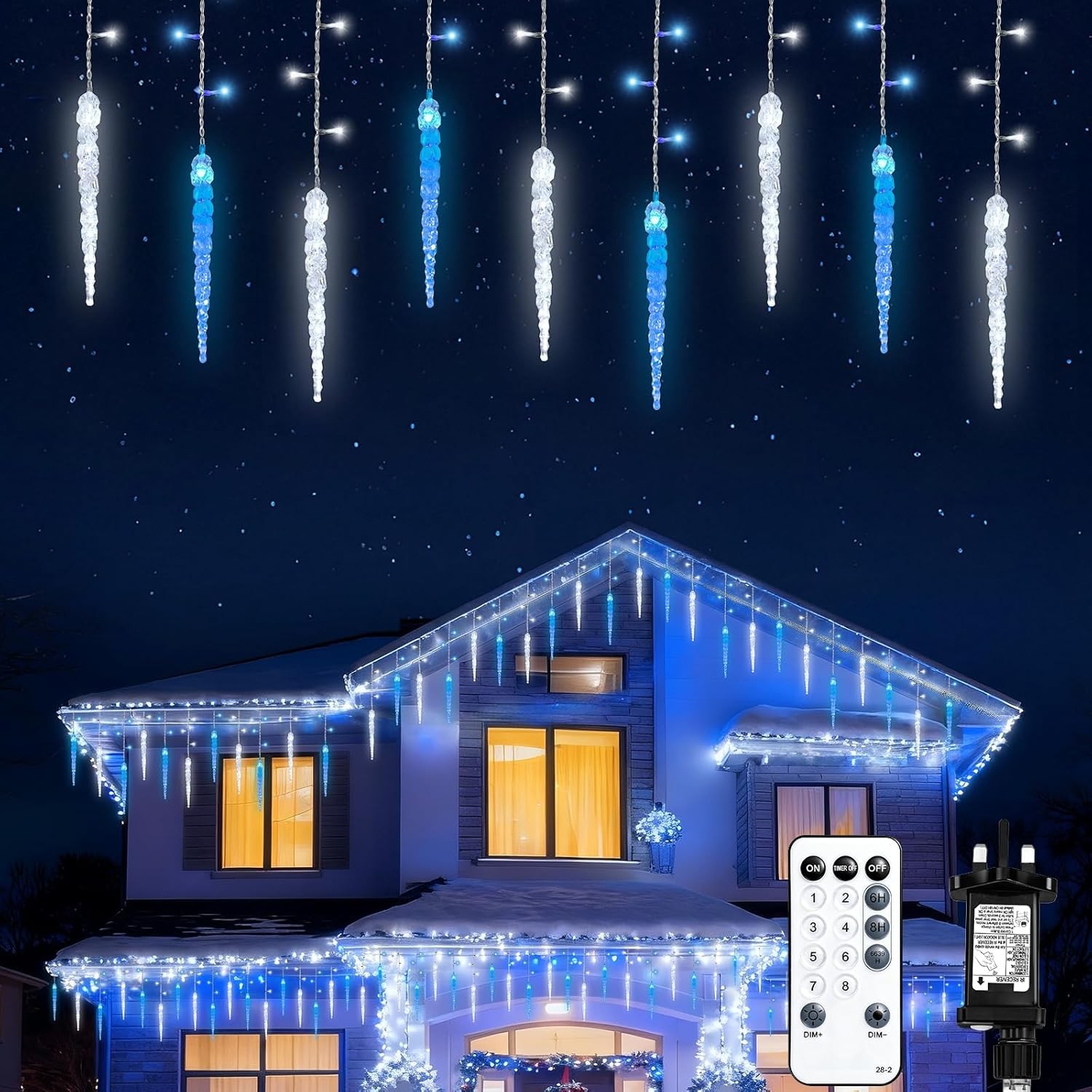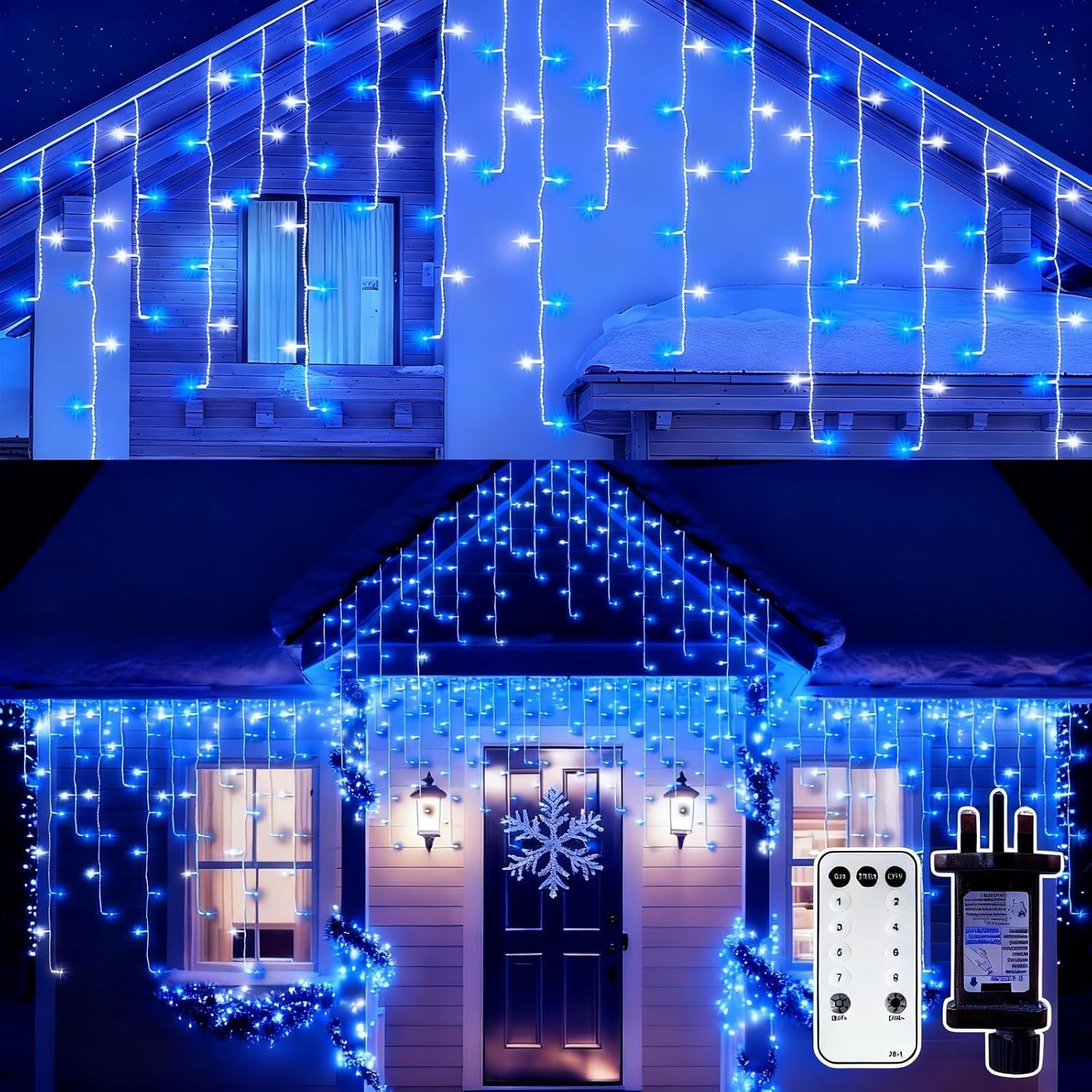 Icicle Christmas Lights Outdoor 10m/33ft 400LED Blue & Cool White, 8 Modes Main