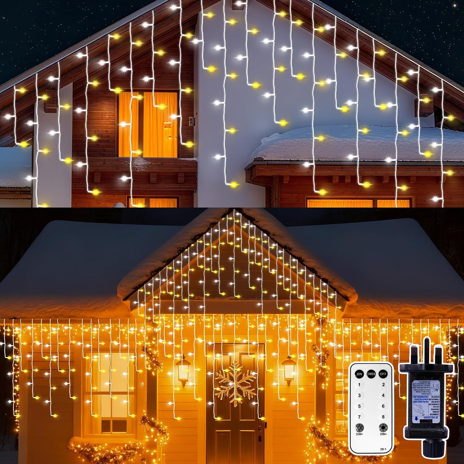 TobeBright 33ft 400LED Icicle Christmas Lights Outdoor Indoor Warm White Cool Wh