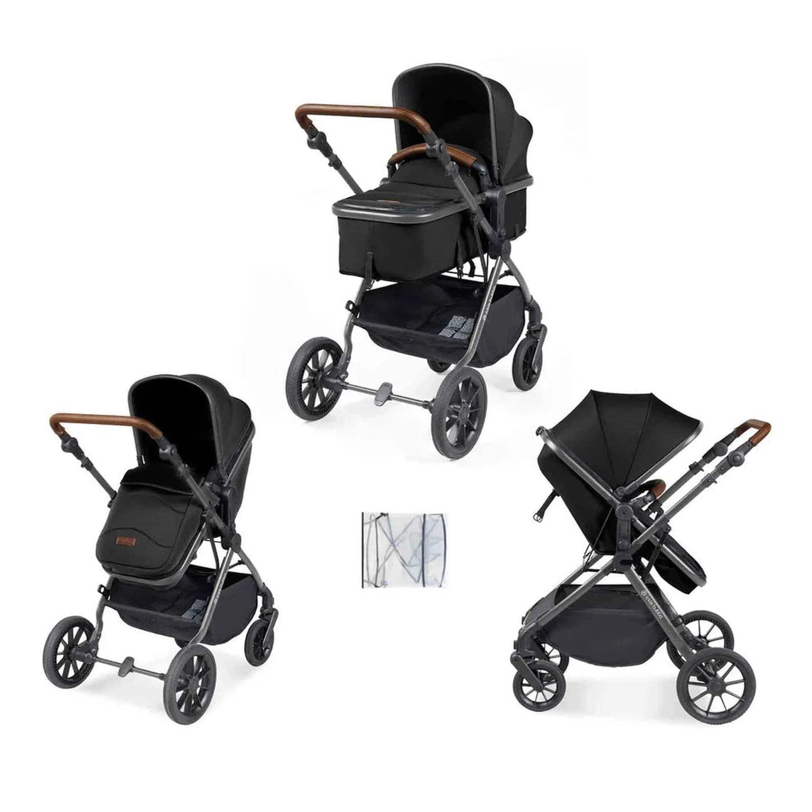 Ickle Bubba Stomp Luxe 12-Piece Travel System with i-Size Stratus Car Seat & ISOFIX Base – All-Terrain Pram, Pushchair, Carrycot, Footwarmer & Rain Cover, Birth to 4 Years* (Black/Midnight/Black)