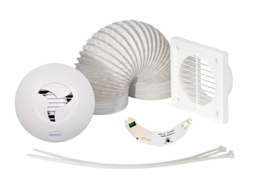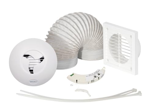 Airflow iCON 15 Extractor Fan Kit - 100mm/4 - Comes with Humidity/Timer Module, White Grille, PVC Hose - 19 l/s, 9.7W Energy Efficient | 3-Year Warranty