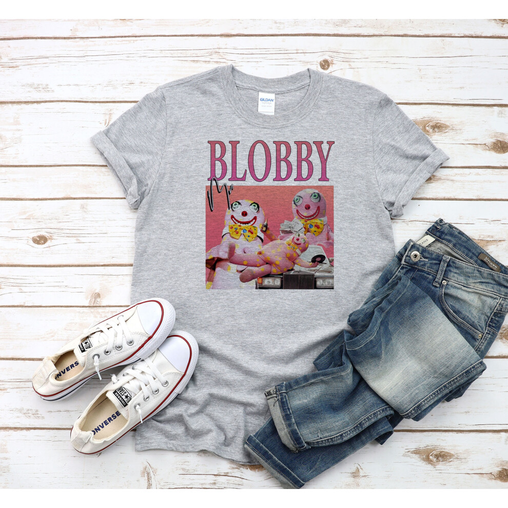 (Small, Grey) Mr Blobby Collection TV Icon Vintage Men Women Unisex Top T Shirt