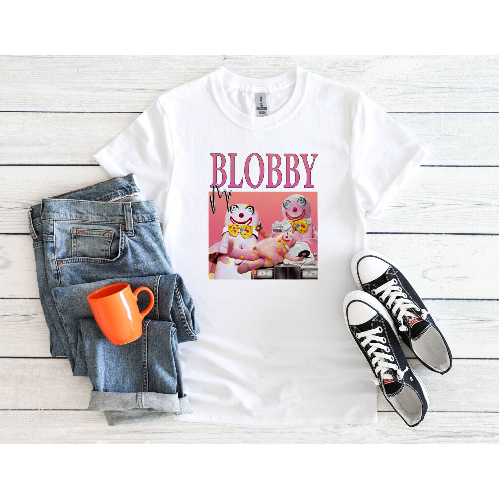 (Medium, White) Mr Blobby Collection TV Icon Vintage Men Women Unisex Top T Shirt