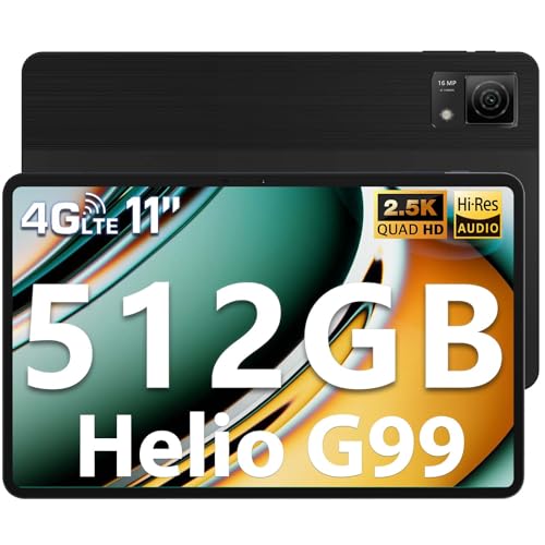 DOOGEE T40 Android Tablets, 512GB ROM (2TB TF)+20GB RAM, 2.5K Tablet 11 Inch, Helio G99, 8580mAh/18W, Gaming Tablet with Sim Card Slot, 3.5mm Jack/16MP/5G WiFi/Hi-Res/Quad Speakers/Face ID, Black