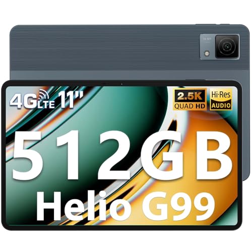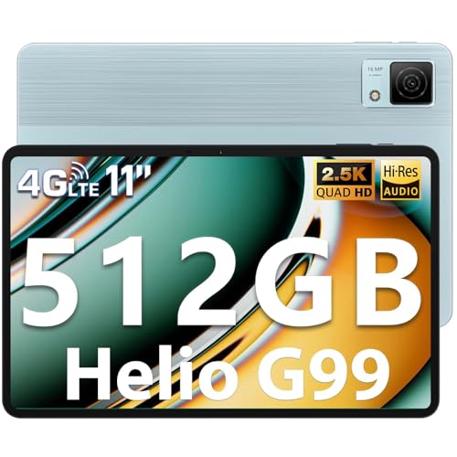 DOOGEE T40 Android Tablets, 512GB ROM (2TB TF)+20GB RAM, 2.5K Tablet 11 Inch, Helio G99, 8580mAh/18W, Gaming Tablet with Sim Card Slot, 3.5mm Jack/16MP/5G WiFi/Hi-Res/Quad Speakers/Face ID, Blue