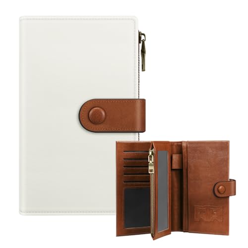 FINTIE RFID Women Purses, 3 in 1 Credit Card Holder Passport Holder Trifold Clutch Wallet with Zipper Coin Pocket ID Window SIM Slots for Ladies Girls Female Teen, White Brown
