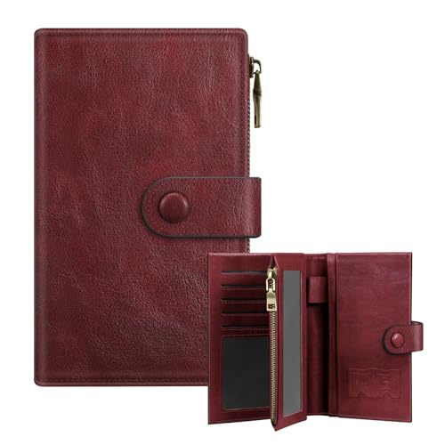 FINTIE RFID Women Purses, 3 in 1 Credit Card Holder Passport Holder Trifold Clutch Wallet with Zipper Coin Pocket ID Window SIM Slots for Ladies Girls Female Teen, Wine Red