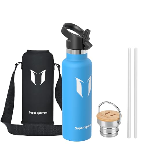Super Sparrow Stainless Steel Water Bottle -620ml- Vacuum Insulated Metal Water Bottle - Standard Mouth Flask - BPA Free - Ideal Straw Water Bottle for Work, Gym, Travel, Sports