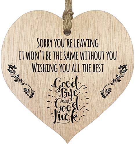 Sorry You're Leaving Hanging Wooden Heart Sign Plaque Work Colleague Leaving Gifts - Light Wood Hearts Signs, Work Gifts, Leaving Decorations, Christmas Secret Santa Gift, Leaving Present Ideas