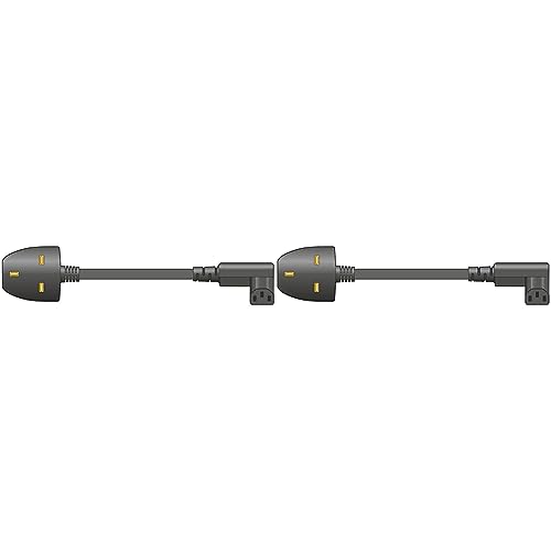 Mercury UK Plug to Right Angle IEC Power Lead | 1.0m, Black (Pack of 2)
