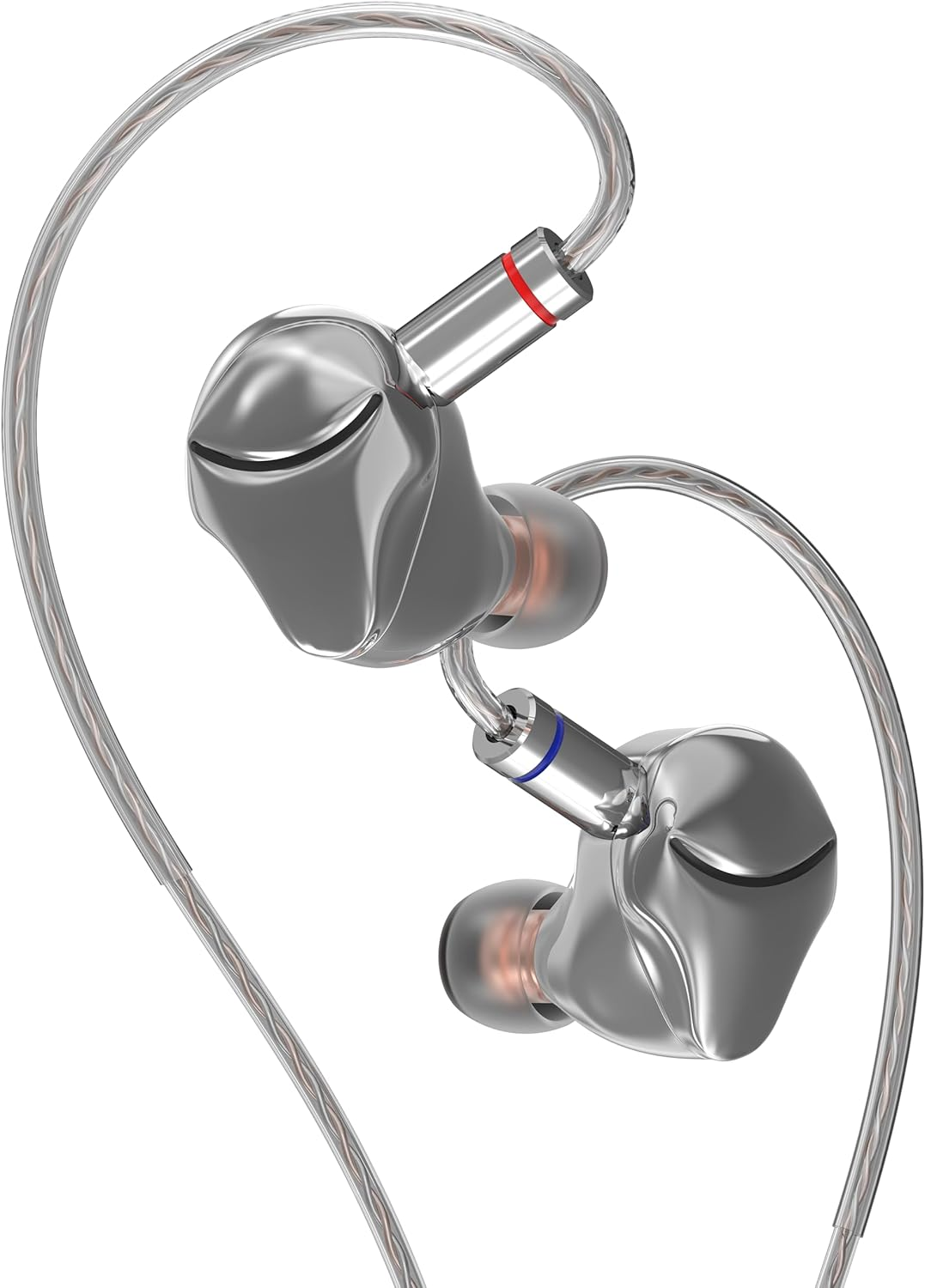 Silver IEM Earphones Noise Cancelling HiFi Wired Gaming Earbuds With Detachable