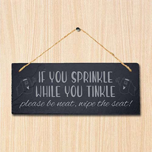 Stukk If You Sprinkle While Tinkle Laser Hanging Humorous Sign, Natural Engraved Slate Stone Plaque, 30x12cm (Large)
