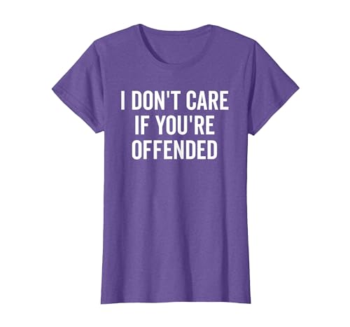 I Don't Care If You're Offended - Funny Sarcastic Statement T-Shirt, Women, Purple Heather, X-Large