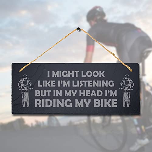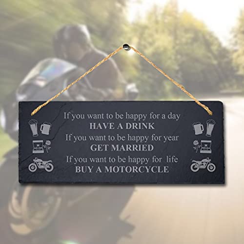 Stukk If You Want to Be Happy Four Wheels Move Body Two Soul Listening Bikers Laser Hanging Shed Sign (Riding My Bike), Natural Engraved Slate Stone Plaque, 30x12cm (Large)