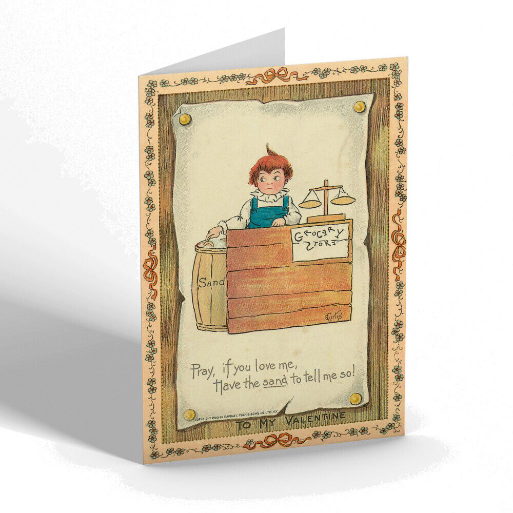 VALENTINES DAY CARD - Vintage Design - Pray, If You Love Me, Have Sand To Tell