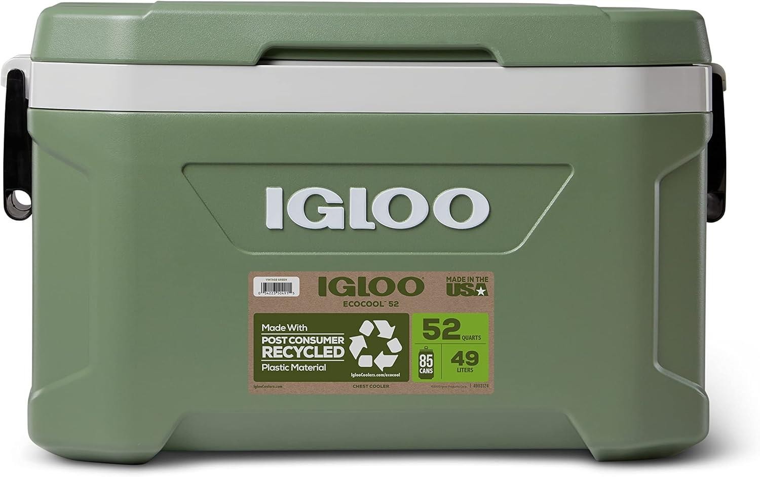 Igloo ECOCOOL 52QT Ice Chest Passive Cool Box – Green/Grey – IG50491